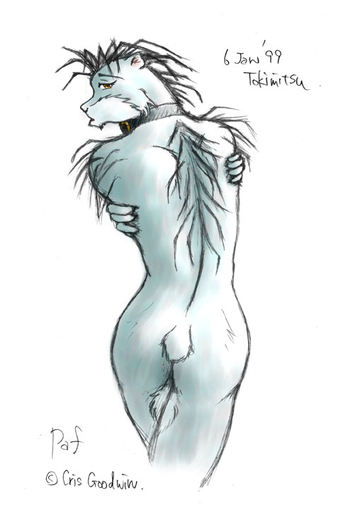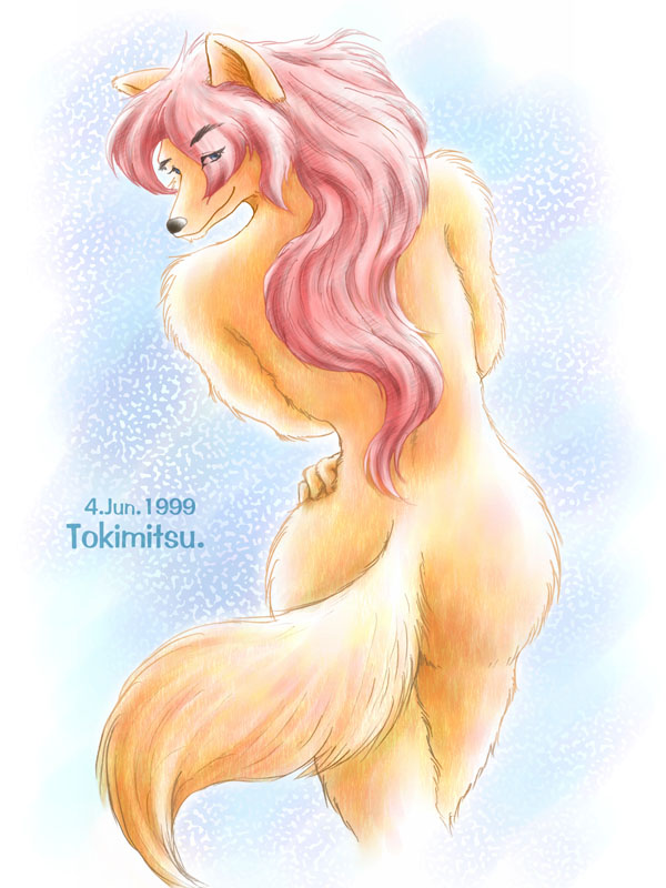 背中フェチの本領発揮。ふさふさ感も適度に出てよし。 でも、尻尾の色間違ってる(爆) |
